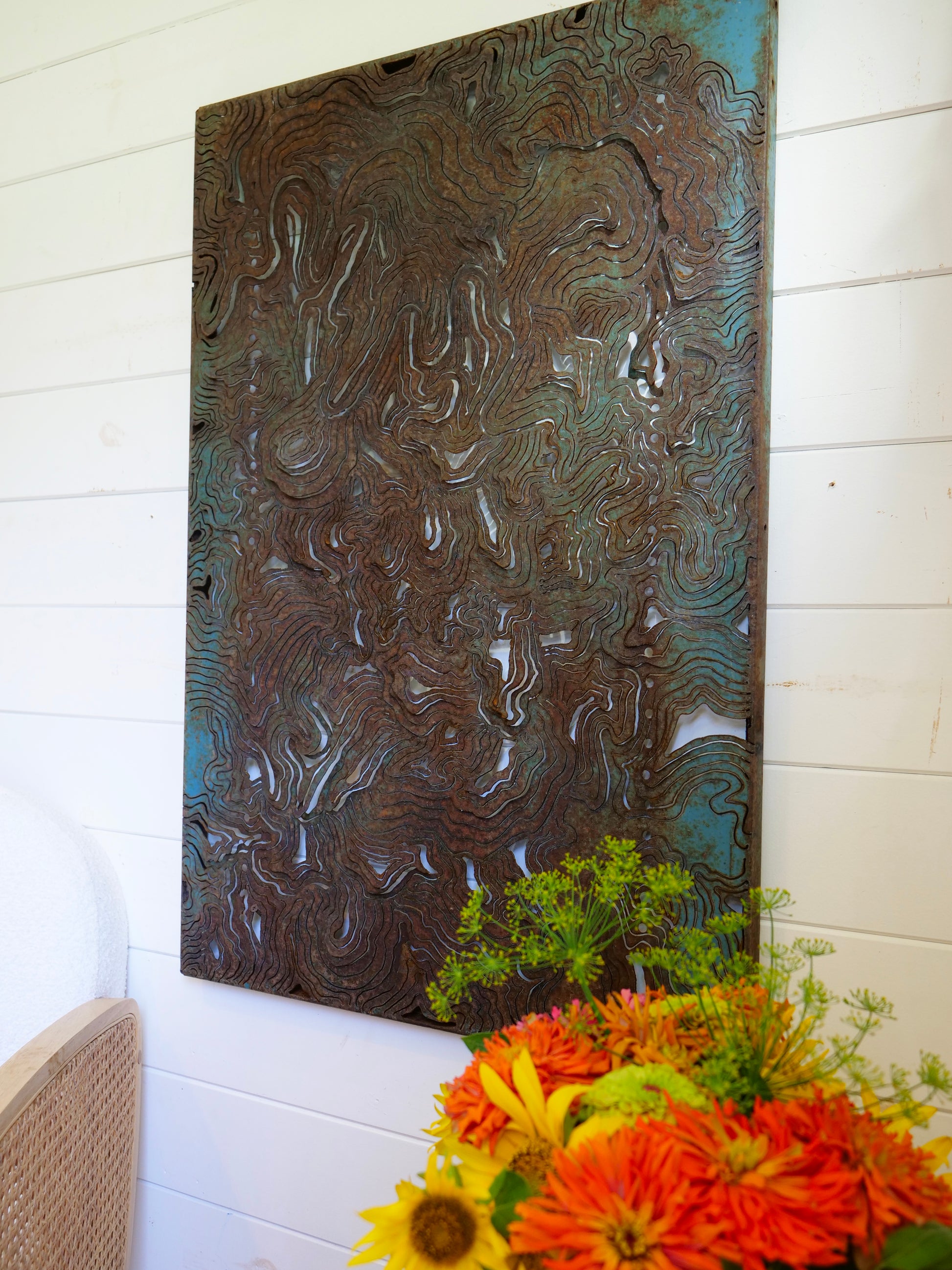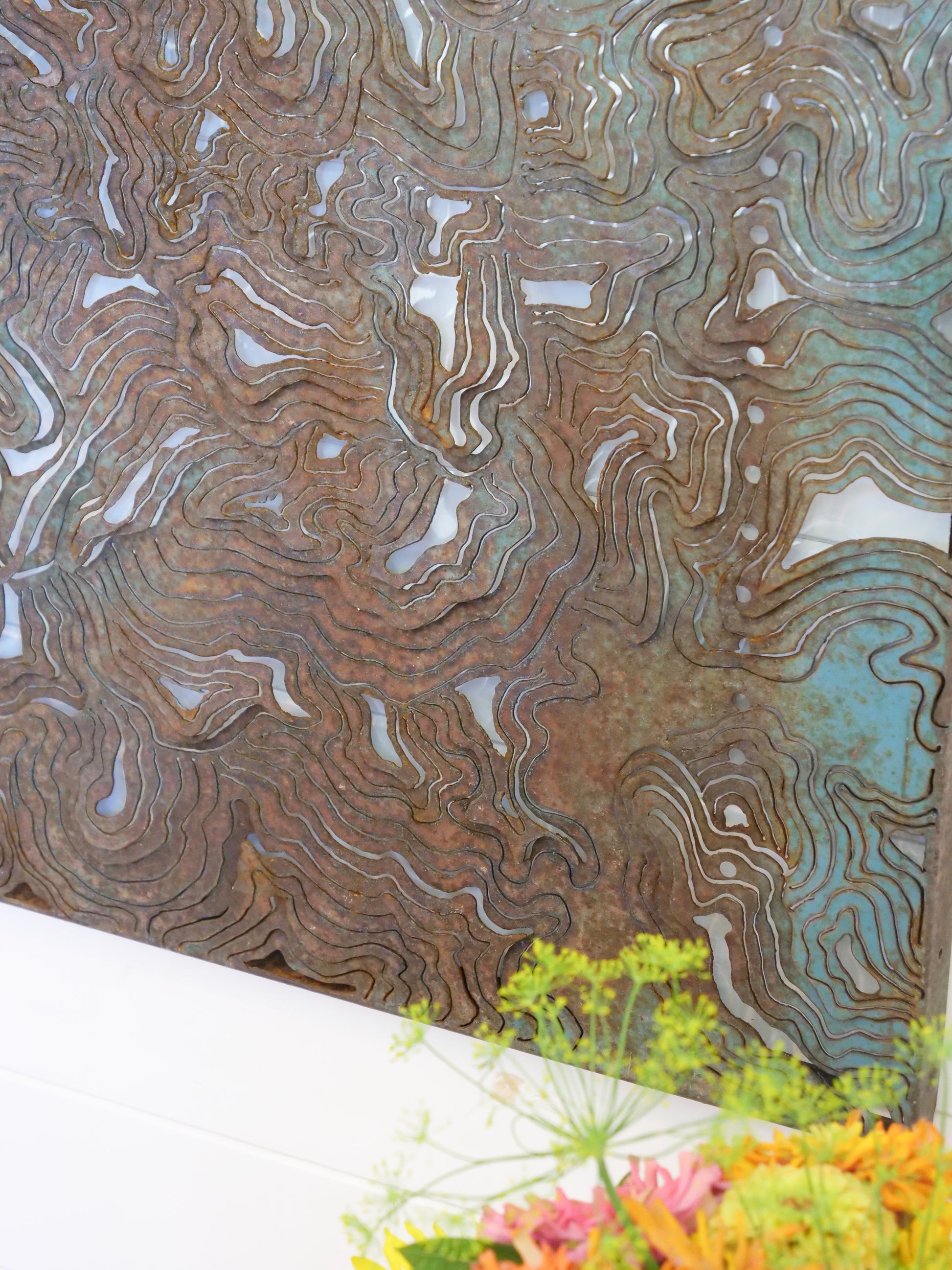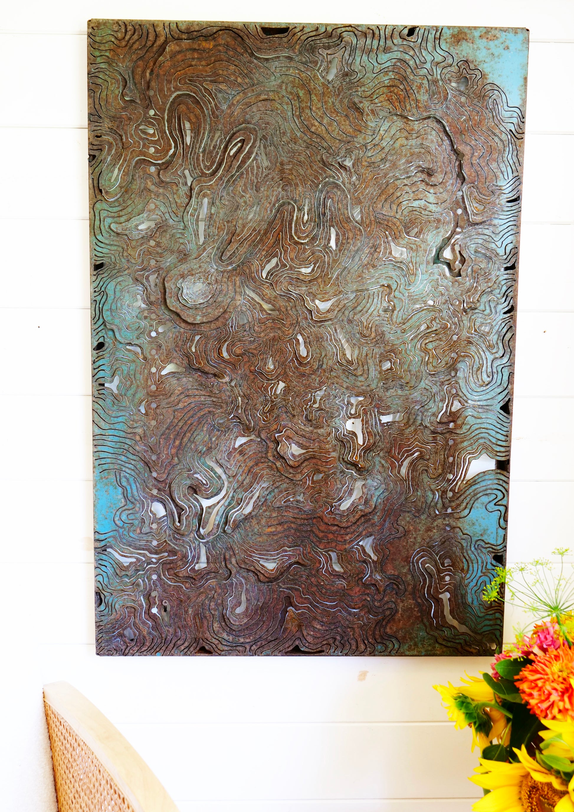 24"x36" Blue Plasma-Cut Topography.