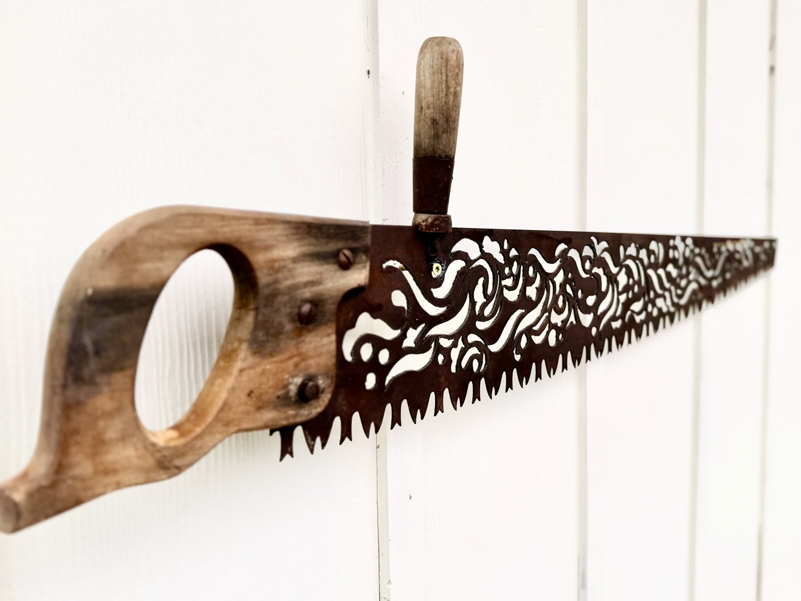 LARGE Antique vintage saw. plasma-cut. apx 4' long. Waves.