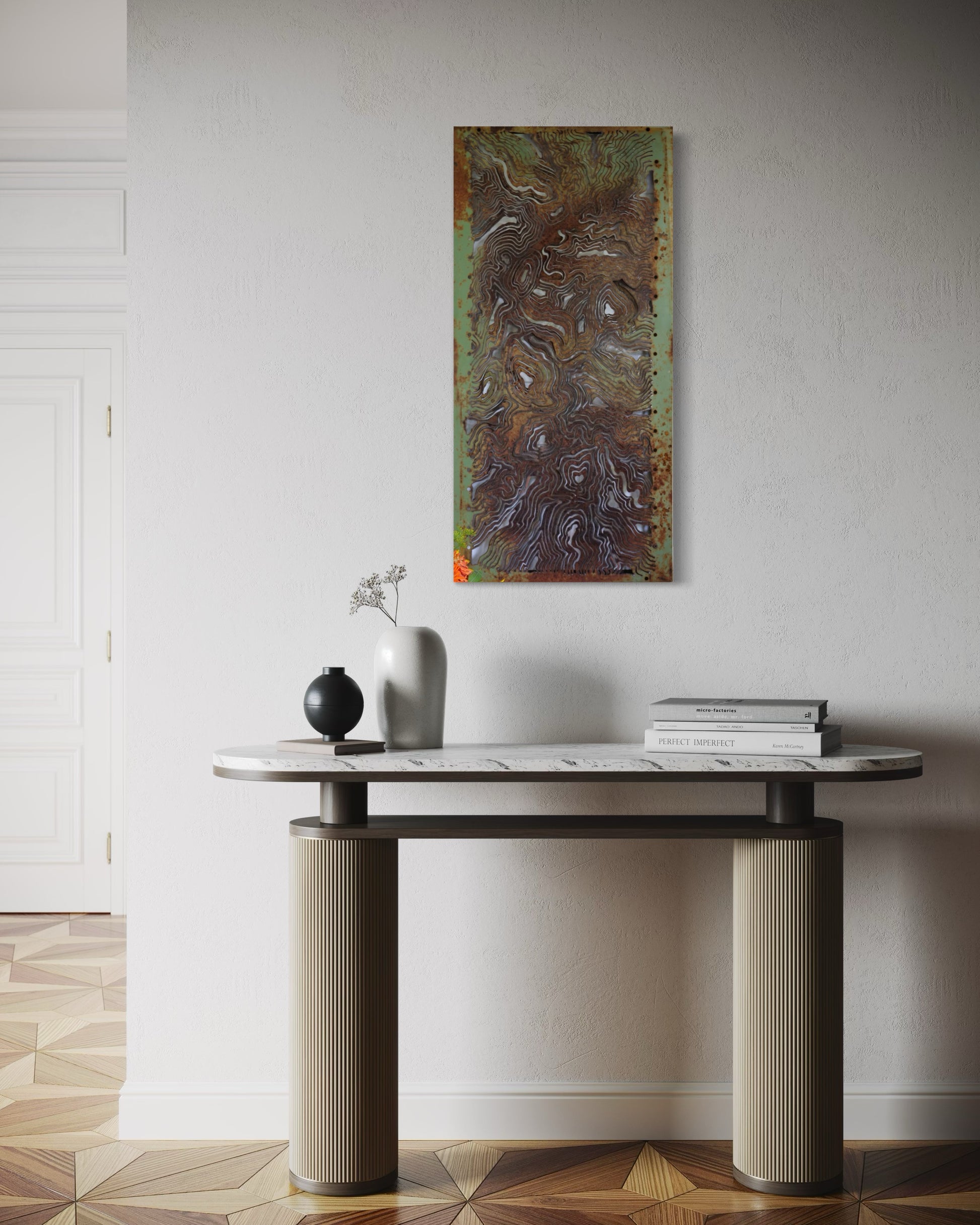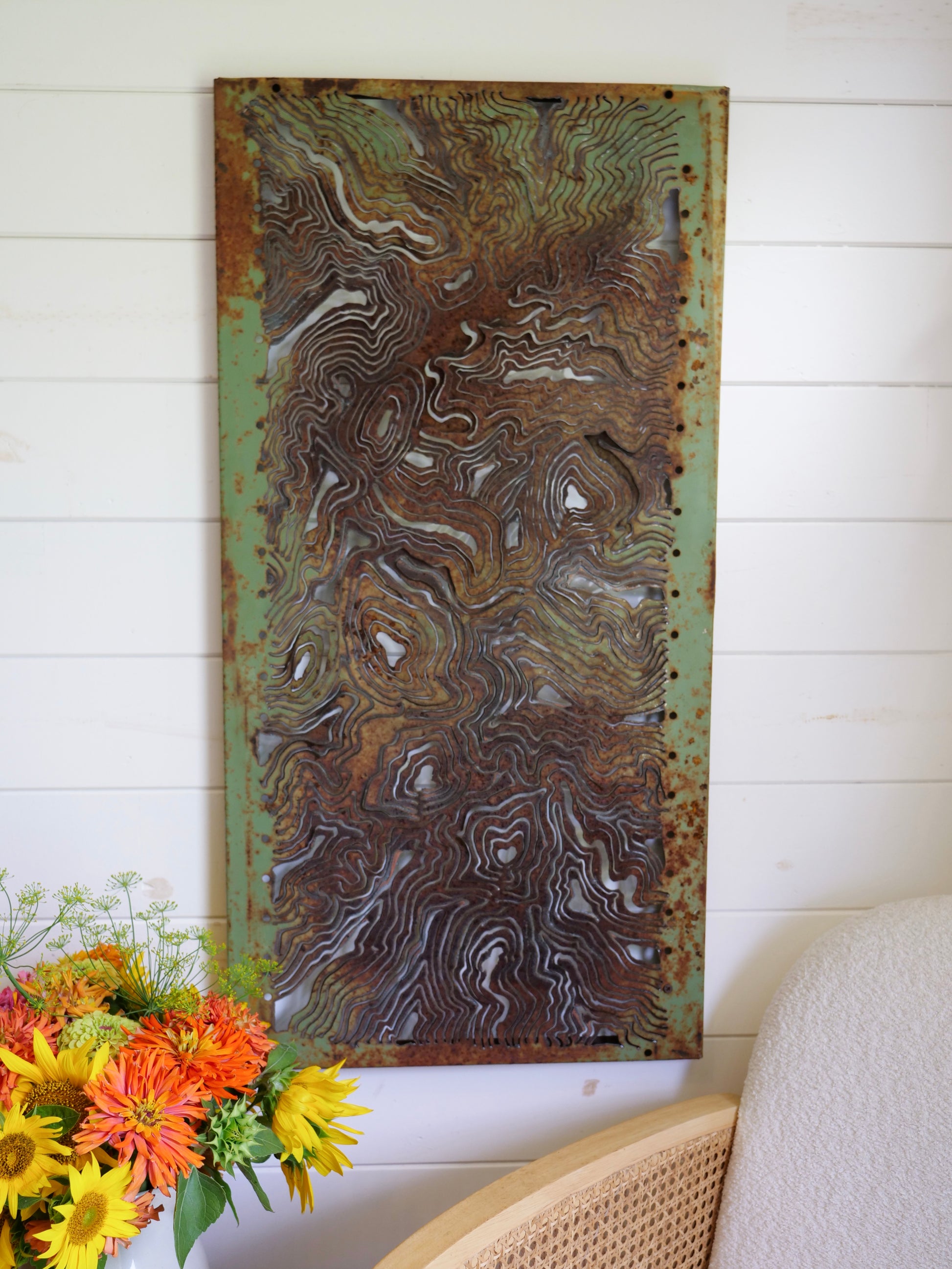 Vintage Shelf Canvas - Green plasma-cut Topography 18"x36"