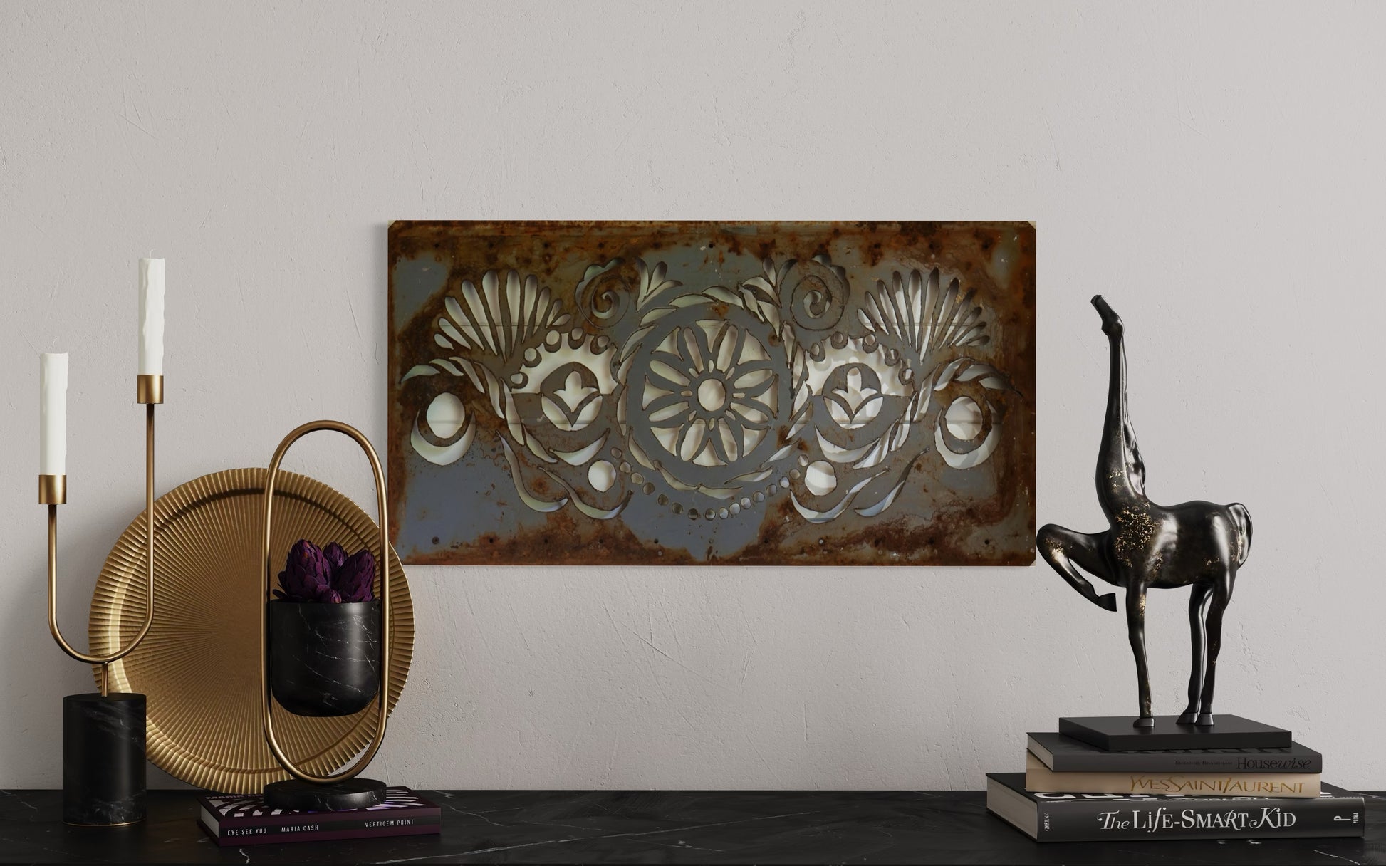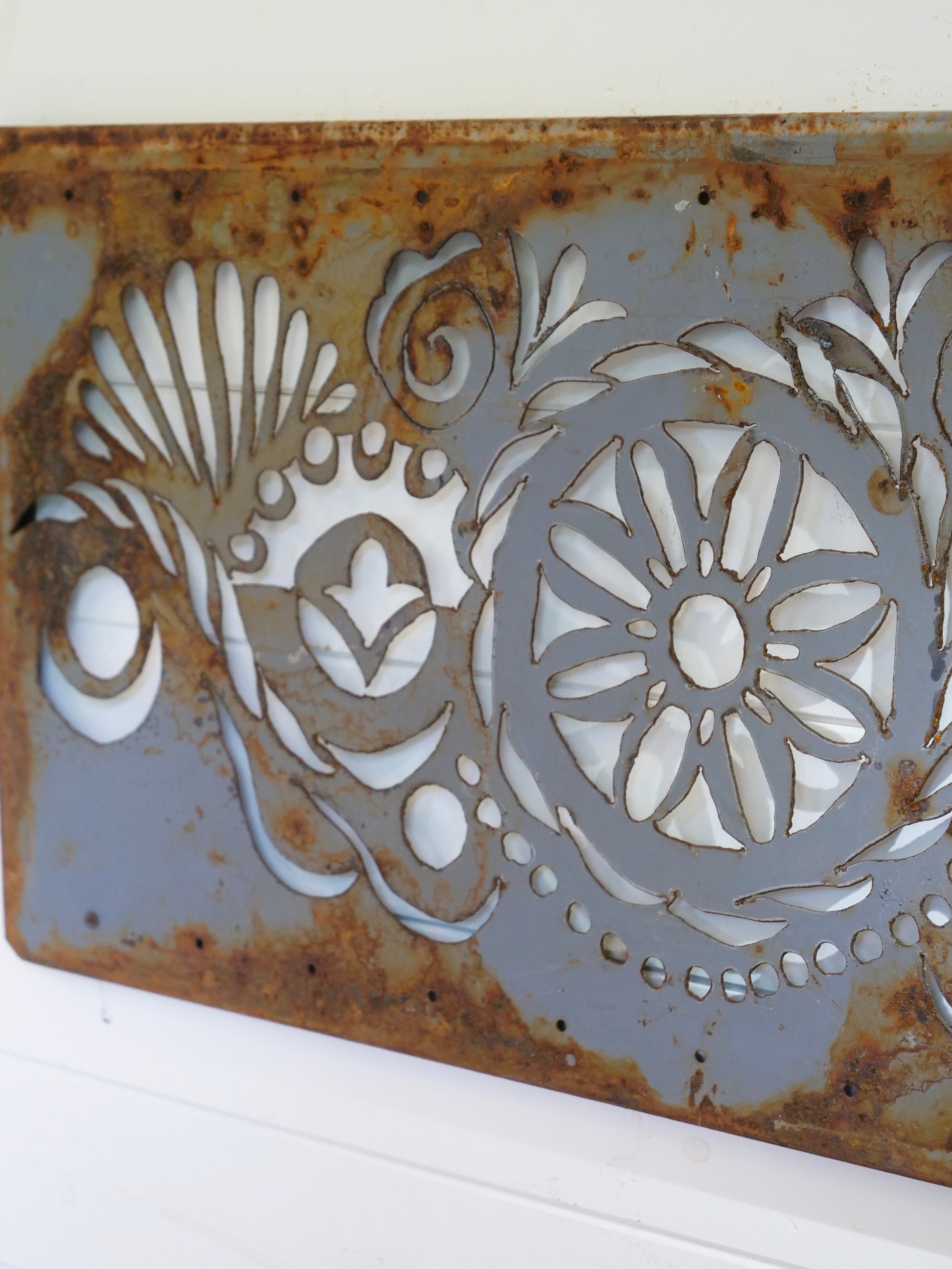Grey Abstract Plasma-cut. 18.5x36"